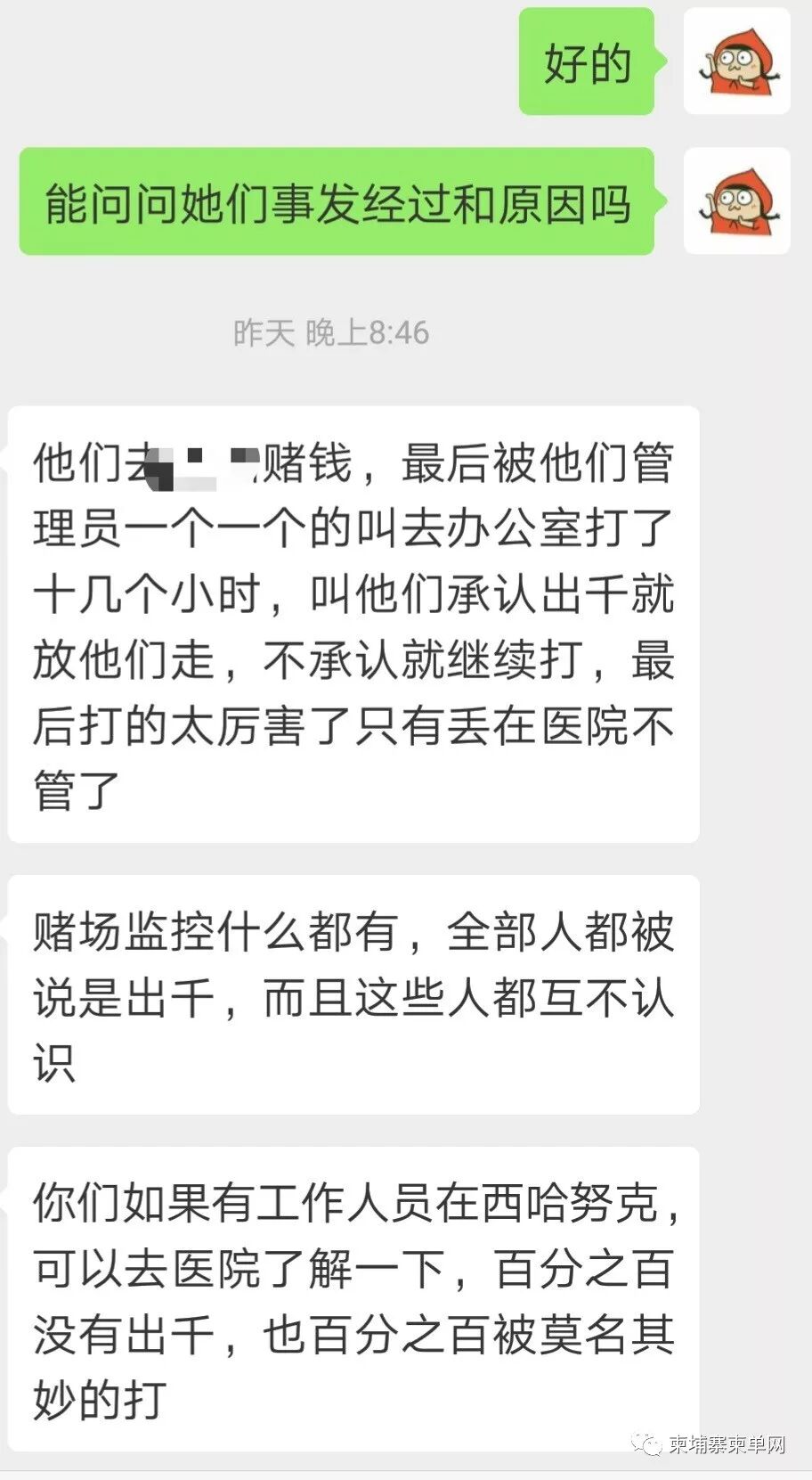 At that time, there were police officers present. The casino people didn’t know what to do with them. They just changed the agreement to say there was misunderstanding and asked them to sign . The police let the people in the casino get some food for them. Later, under the escort of the police, he and his wife were sent to a nearby hospital.